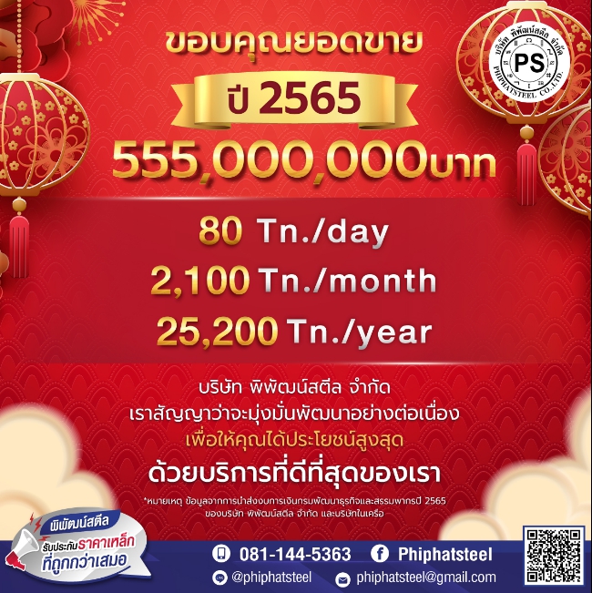 พิพัฒน์สตีล ขอขอบคุณลูกค้าที่เชื่อมั่นในคุณภาพสินค้าและการให้บริการของเราในปี 2565