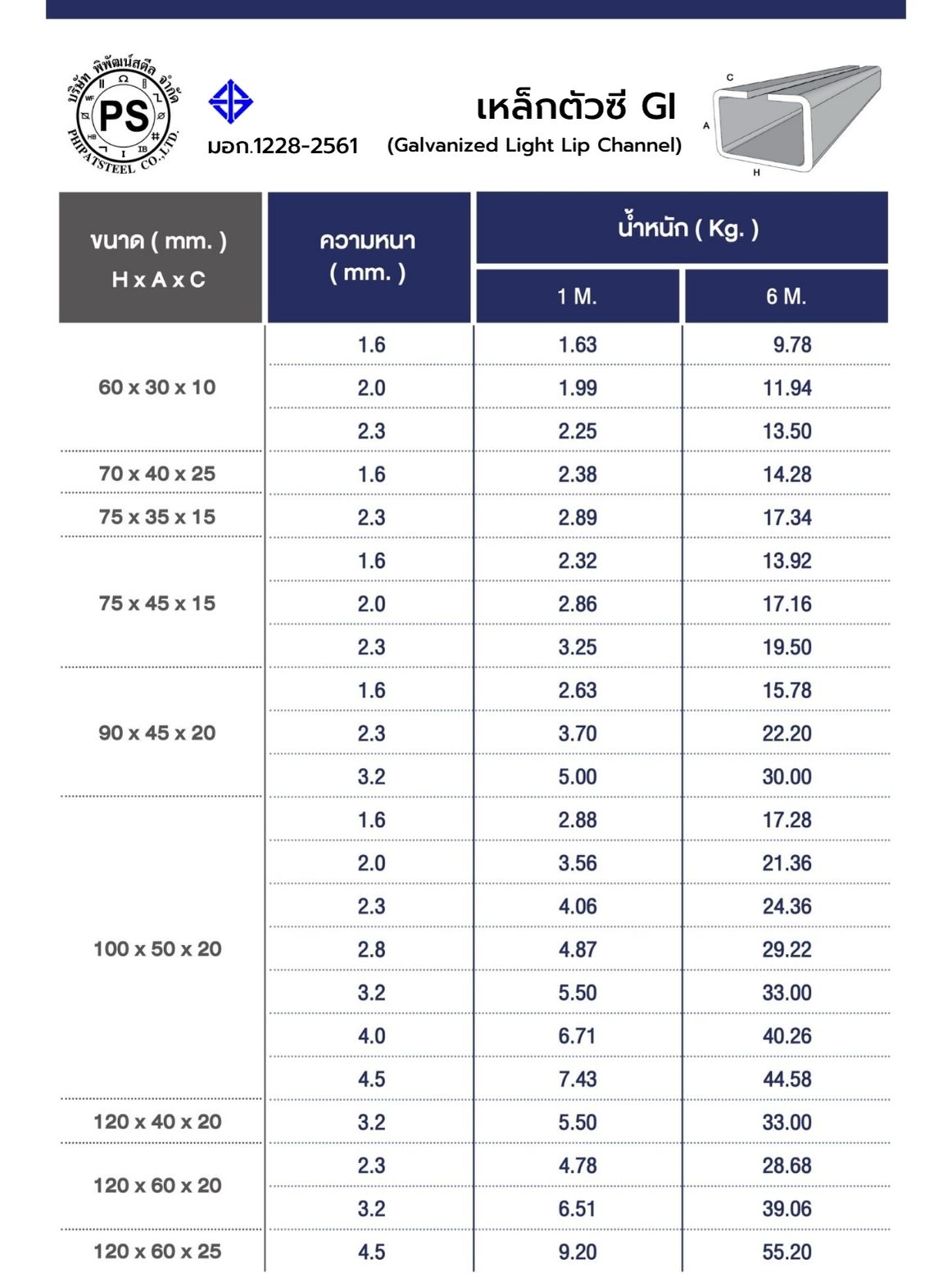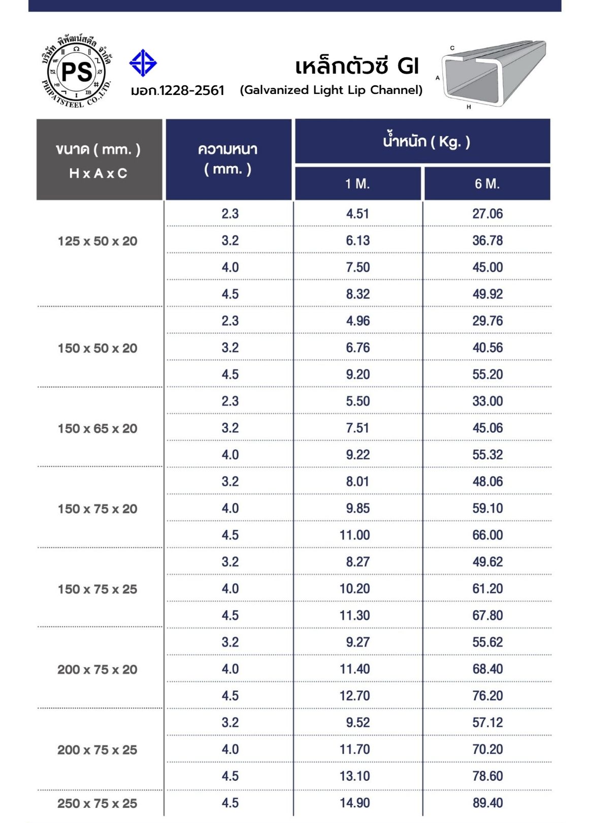 | ขนาด(mm.)H x A x C | ควาหนา (mm.) | น้ำหนัก (kg.) | |